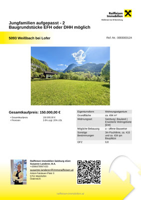 Die Größe ermöglicht den Bau eines Doppelhauses; eine mögliche Bebauung ist dargestellt. Interessiert? Raiffeisen Immobilien freut sich auf Ihre Anfrage.