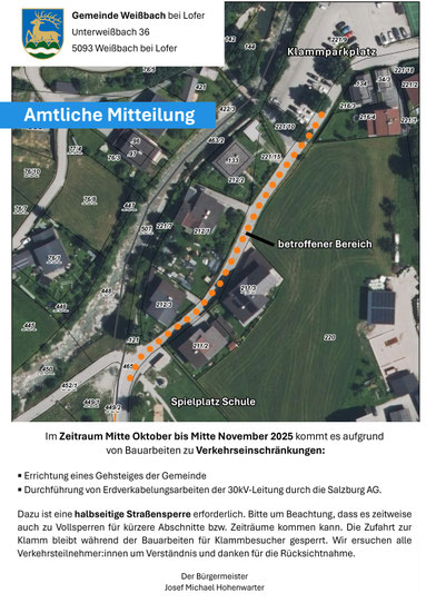 Mit Februar hat die Salzburg Netz GmbH in Weißbach die Bautätigkeiten für eine neue Mittelspannungsversorgung begonnen. Bis zum Herbst 2025 wird zwischen der Trafostation Weißbach Schule und dem Kraftwerk Dießbach eine erdverlegte 30kV Doppelleitung errichtet, die die Versorgungssicherheit in diesem Gebiet nachhaltig sicherstellen wird. Die bestehende Mittelspannungsfreileitung wird durch zwei parallel verlaufende Erdkabel ersetzt. Nach Inbetriebnahme können dadurch in diesem Bereich die störungsanfälligen Mittelspannungsmaste und Freileitungsdrähte abgebaut werden.