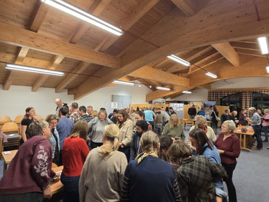 Nach der Begrüßung durch den Bürgermeister konnten die Bürgerinnen und Bürger an fünf verschiedenen Stationen vorbeischauen und sich über laufende Projekte und Maßnahmen in der Gemeinde informieren – vieles davon ist direkt aus dem Beteiligungsprozess entstanden.