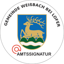Im Sinne einer durchgängigen elektronischen Verfahrensabwicklung kann die Gemeinde Weißbach bei Lofer auf ihren Erledigungen eine Amtssignatur aufbringen. Dadurch wird erkennbar, dass es sich um ein amtliches Schriftstück der Gemeinde handelt. Durch die Amtssignatur können somit die Herkunft und die Echtheit eines Dokuments überprüft werden.